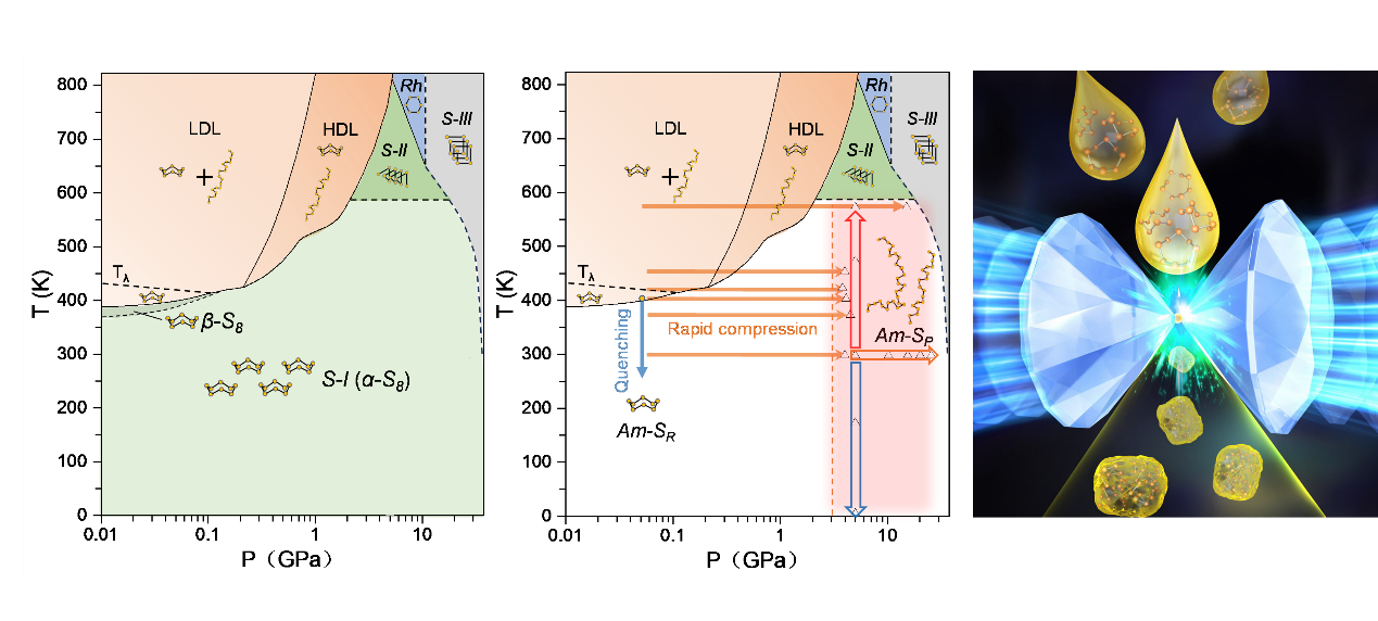 通过快速压缩有效打开液体硫的S8环分子并形成全链结构非晶硫
