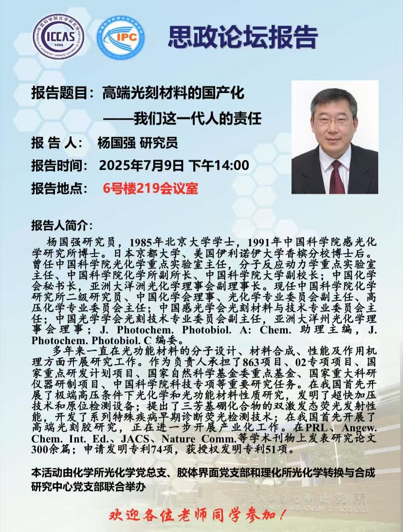 7.9下午2:00,在6-219会议室,杨国强老师做思政报告,欢迎各位老师和同学参加